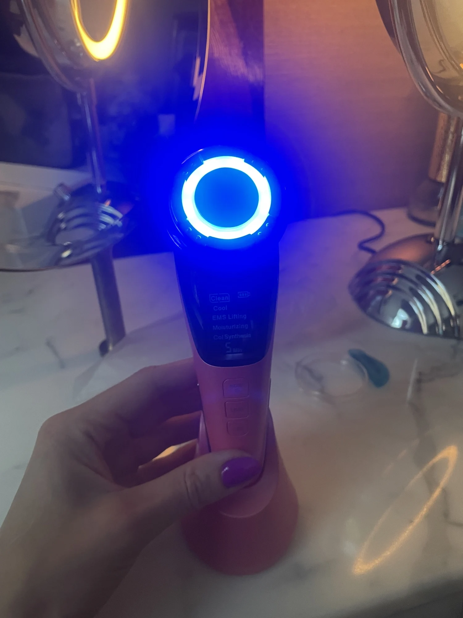 - EMS Stimulation: Adopt EMS micro current to boost the production of collagen and promote blood circulation for an enhanced skin-repairing effect, effectively helping reduce wrinkles, shrink pores, tighten the skin and improve absorption efficiency.